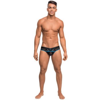 RH-184 Clip Tease Unique Mesh Pouch Thong Blk/Blu Talla L/XL