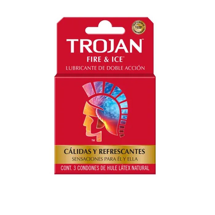 Trojan Fire & Ice, Condones con lubricante de Doble Acción para experimentar sensaciones cálidas, refrescantes y/o cosquilleo para él y ella.