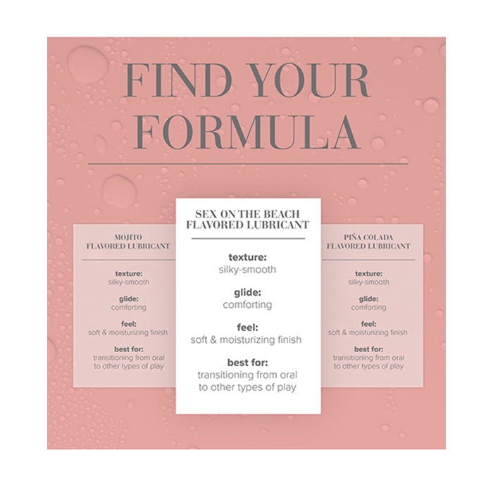 JO Sex on the Beach es un lubricante a base de agua, dulce y sensual, con sabor a melocotón, naranja brillante y un toque de arándano, para un sabor tan tentador como el clásico cóctel. Su fórmula sin azúcar se desliza fácilmente y realza cada beso, lamida y caricia con un sabor que aporta seducción tropical a cualquier momento. Forma parte de la Colección Cocktails y es perfecto para la intimidad oral, facilitando la transición a las relaciones sexuales. Es compatible con todo tipo de juguetes y preservativos, y se enjuaga fácilmente con agua para una piel suave e hidratada, sin regusto persistente.