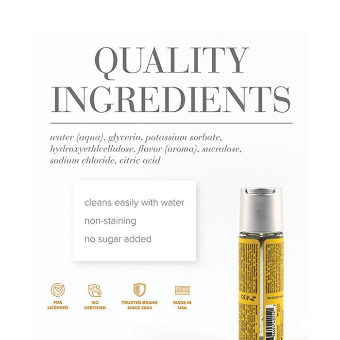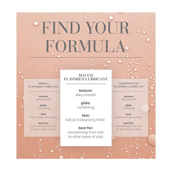 JO Mai Tai es un lubricante a base de agua, dulce y con sabor a sol, que combina piña jugosa, cítricos brillantes y un toque de almendra para un sabor irresistiblemente exótico. Su fórmula sin azúcar se desliza suavemente y realza cada beso, lamida y caricia con un sabor inspirado en tu escapada isleña favorita. Es perfecto para la intimidad oral y se adapta fácilmente a las relaciones sexuales. Es seguro con todo tipo de juguetes y preservativos, y se enjuaga fácilmente con agua para una piel suave e hidratada, sin regusto persistente.