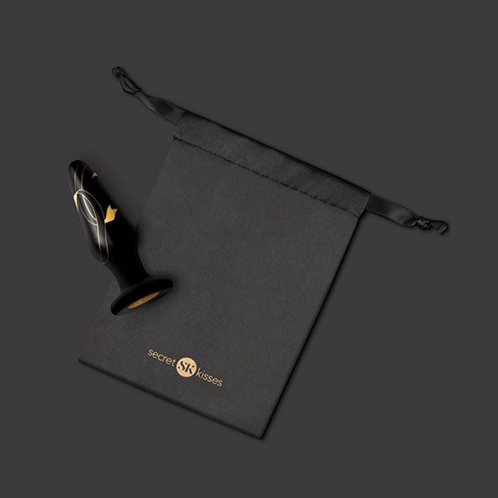Secret Kisses 4″ Handblown Glass Plug – Black/Gold